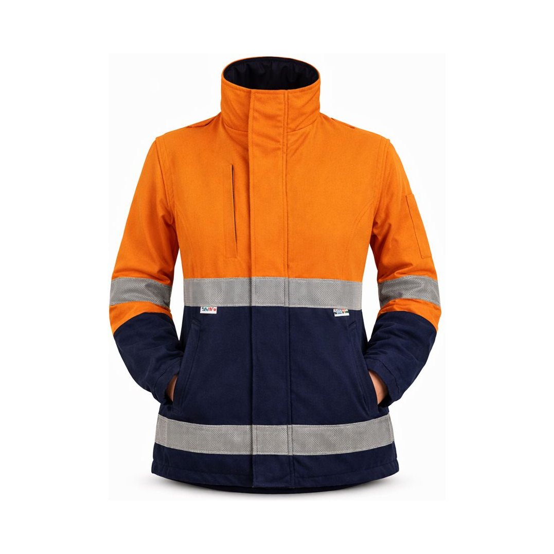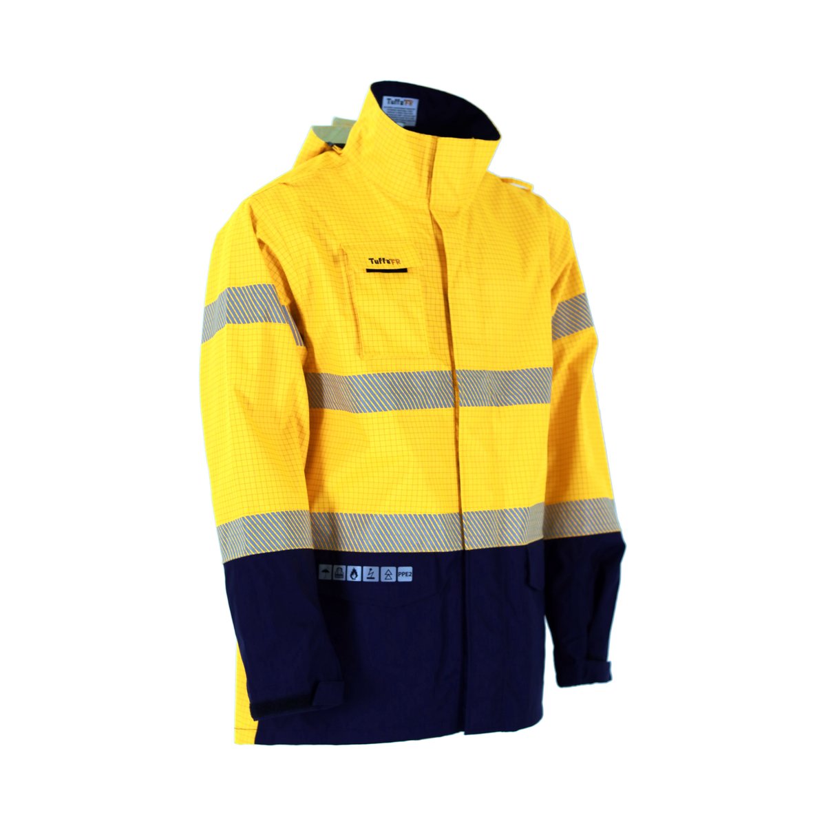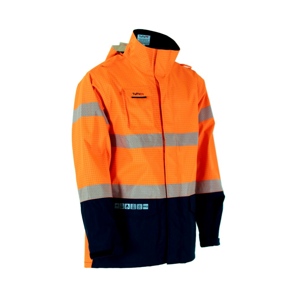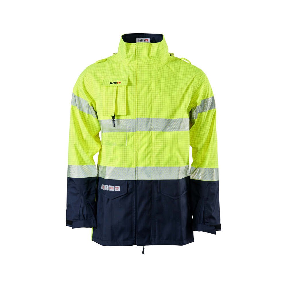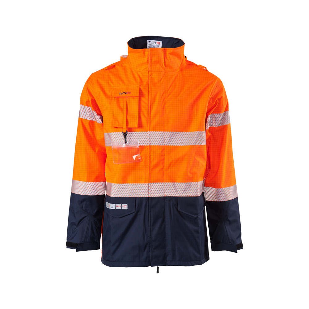 FR/ARC rated jacket fleecy ppe2 featuring super soft fleecy to keep you warm, available in men's and women's sizes, high neck protection, radio/gas loops, hood with adjustable shock cord.